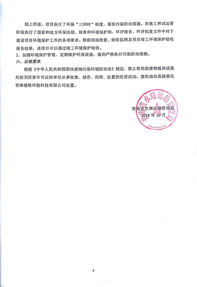 根據(jù)中華人民共和國國務院令第253號《建設項目環(huán)境保護管理條例》(中華人民共和國國務院令第682號《國務院關于修改〈建設項目環(huán)境保護管理條例〉的決定》和《建設項目竣工環(huán)境保護驗收暫行辦法》,嚴格依照有關法律法規(guī),建設項目環(huán)境保護設施驗收技術規(guī)范,本項目環(huán)評報告表和環(huán)保審批部門審批意見以及企業(yè)自行驗收相關要求等對本項目進行驗收,本項目符合環(huán)保驗收條件,可以通過環(huán)保驗收。 現(xiàn)將本項目竣工環(huán)境保護驗收情況進行公開,并征求公眾意見。一、征求意見日期:自公示之日起20個工作日 二、征求意見期間,驗收組接受反映公示的建設項目竣工環(huán)境保護驗收情況和問題的來信、來訪和來電。 三、聯(lián)系方式 聯(lián)系人:張工 電 話:15297122093 通訊地址:青海省西寧市城北區(qū)經(jīng)四路創(chuàng)新創(chuàng)業(yè)大廈22號