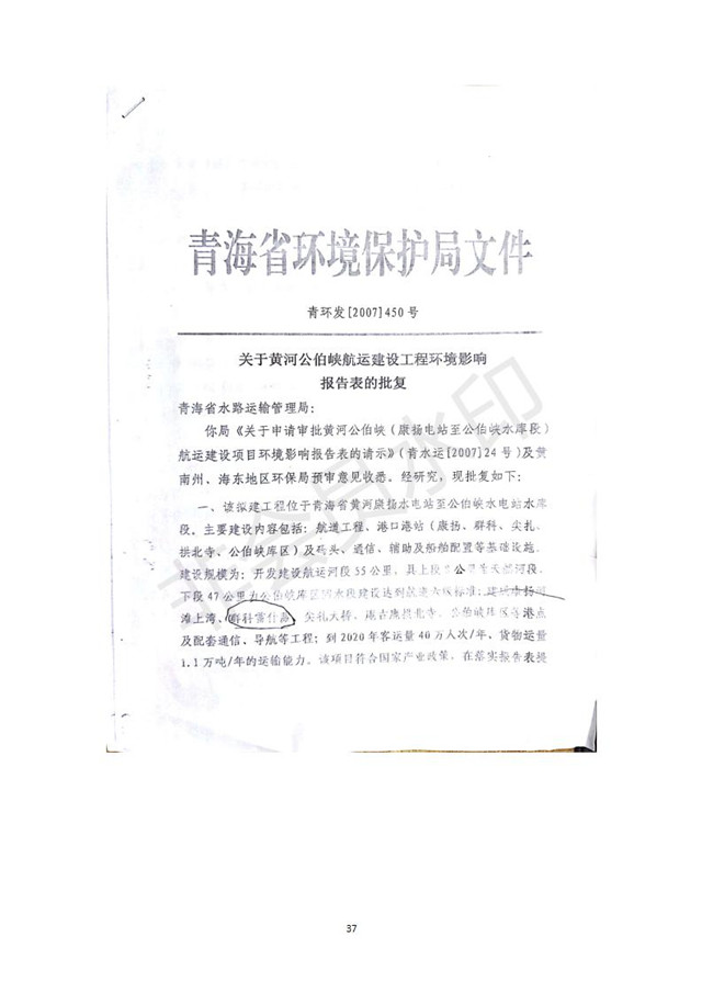 黃河公伯峽(康楊電站至公伯峽水庫段)航運建設工程