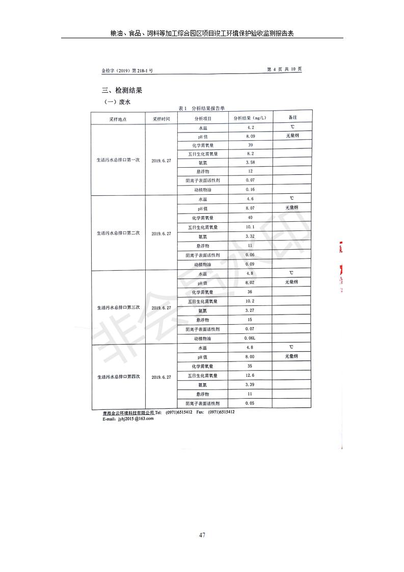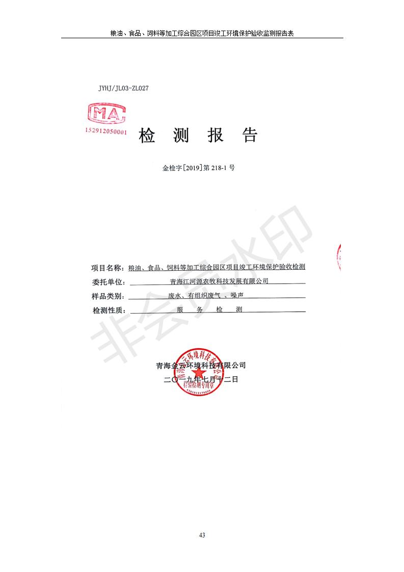 根據(jù)中華人民共和國(guó)國(guó)務(wù)院令第682號(hào)《國(guó)務(wù)院關(guān)于修改〈建設(shè)項(xiàng)目環(huán)境保護(hù)管理?xiàng)l例〉的決定》和《建設(shè)項(xiàng)目竣工環(huán)境保護(hù)驗(yàn)收暫行辦法》(國(guó)務(wù)院令682號(hào)),糧油、食品、飼料等加工綜合園區(qū)項(xiàng)目竣工環(huán)境保護(hù)驗(yàn)收監(jiān)測(cè)報(bào)告表(包括竣工環(huán)境保護(hù)驗(yàn)收監(jiān)測(cè)報(bào)告表和驗(yàn)收意見)公示如下。 一、項(xiàng)目名稱:糧油、食品、飼料等加工綜合園區(qū)項(xiàng)目 二、地點(diǎn):河湟新區(qū)(海東工業(yè)園區(qū)臨空綜合經(jīng)濟(jì)園) 六、聯(lián)系電話:0971-6515411 七、公示時(shí)間:二〇一九年十月九日至二〇一九年十一月五日 公示期間,對(duì)上述公示內(nèi)容如有異議,請(qǐng)以書面形式反饋,個(gè)人須署真實(shí)姓名,單位須加蓋公章。